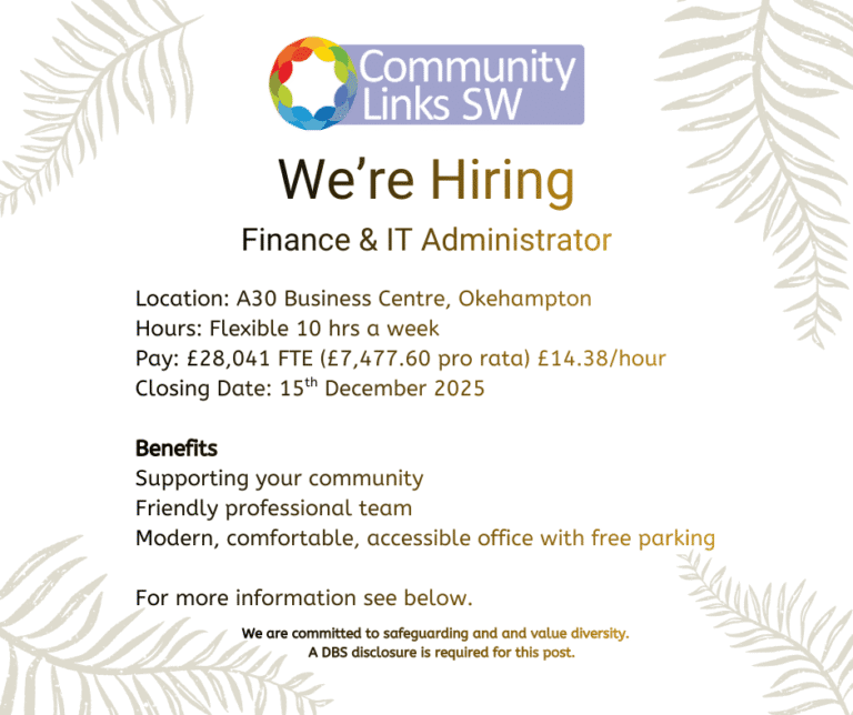 Community Links South West is a not-for-profit Community Interest Company (CIC) based in Okehampton, Devon. We provide support services for families and music education for children through Okehampton Music Centre.